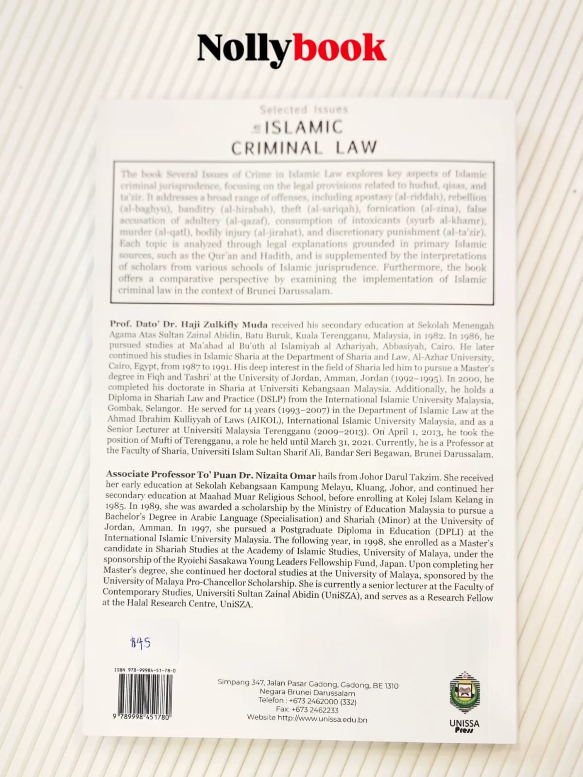 Each topic is analyzed through legal explanations grounded in primary Islamic sources, such as the Qur'an and Hadith, and is supplemented by the interpretations of scholars from various schools of Islamic jurisprudence. Furthermore, the book offers a comparative perspective by examining the implementation of Islamic criminal law in the context of Brunei Darussalam.