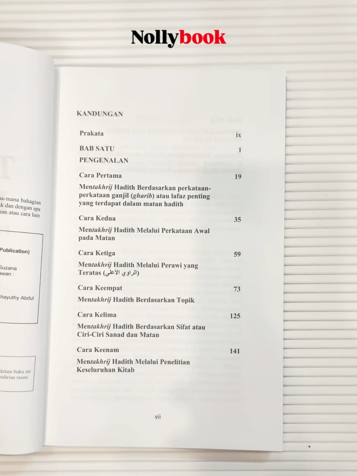- Bab Kedua: Memfokuskan kepada kaedah penilaian hadith, termasuk perincian mengenai ilmu Jarh wa Ta’dil serta langkah-langkah dalam penentuan status hadith.