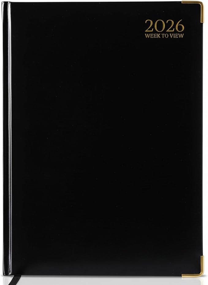 - ✅ Classic Black Hardback Cover: This durable diary features a sleek padded hardback in professional black. Strong binding and a refined look make it perfect for desks, briefcases, or classroom settings.