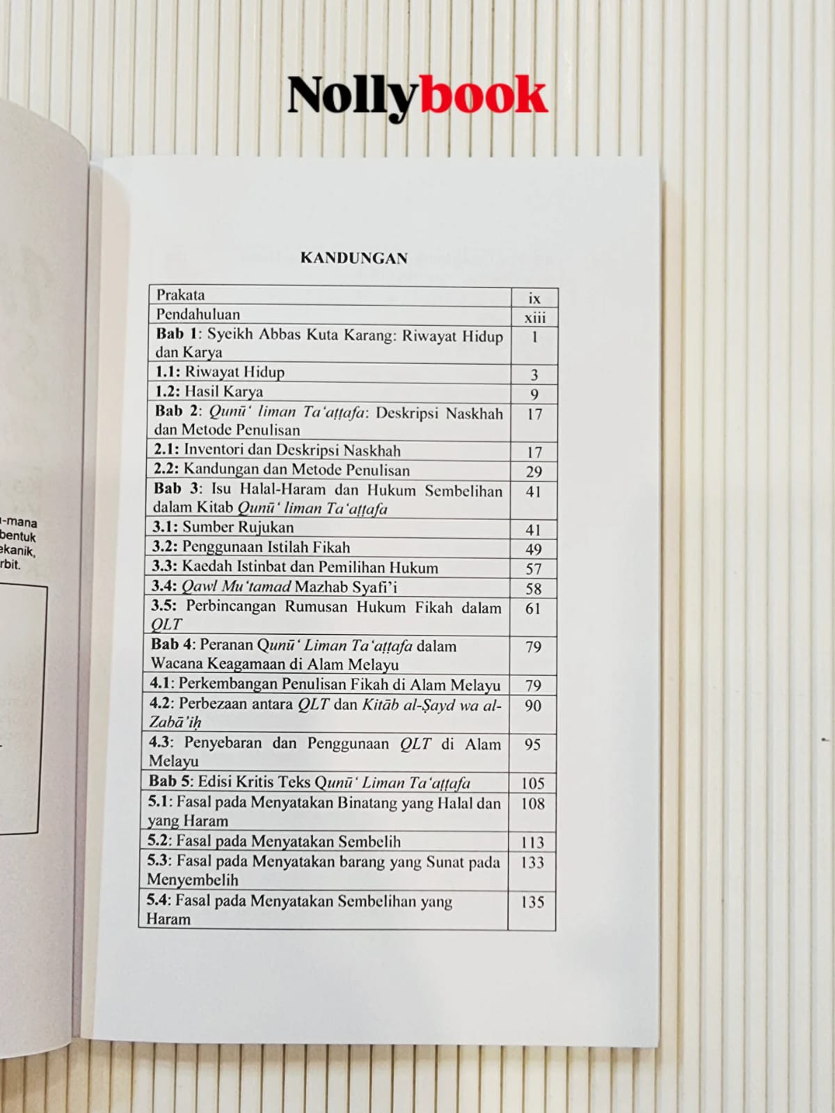 Buku ini merupakan sebuah karya ilmiah yang membincangkan panduan halal-haram dan tatacara sembelihan di Alam Melayu pada abad ke-19. Ia merupakan hasil kajian dan suntingan ke atas teks asal Kitab Qunū’ liman Ta’aṭṭafa (QLT) yang dikarang oleh ulama tersohor dari Aceh, Syeikh ‘Abbas Kuta Karang Al-Ashi.